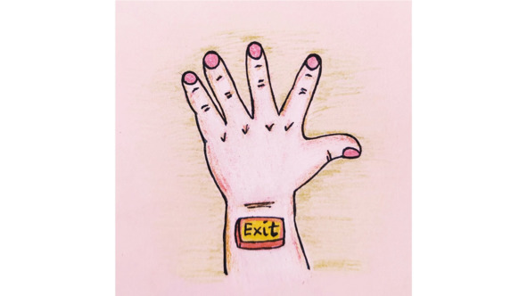 На тыльной стороне Евгешиного левого запястья красовалась кнопка «Exit»[11].