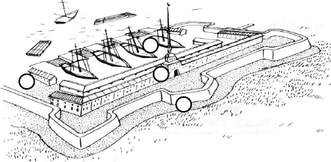 6. Рассмотри рисунок крепости. Расставь цифры из списка в пустые кружки.