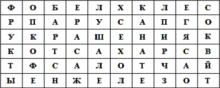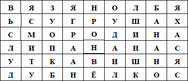 7. Какие растения росли в Летнем саду во времена Петра I? Найди 10 названий растений и обведи их карандашом.