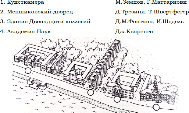4. Вспомни имя первого губернатора Санкт-Петербурга. Прочитай название его дворца. Во времена Петра I дворец был «посольским домом».
