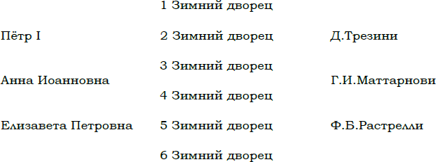 2. За всю историю России было построено 6 Зимних дворцов. Кем и для кого они были построены? Соедини по смыслу.