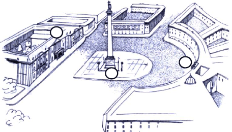 8. В каждой строчке расположи буквы в порядке уменьшения и запиши названия трёх площадей, которые объединяет Адмиралтейство.