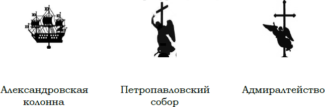 6. На каких архитектурных зданиях расположены эти фигуры? Соедини линией. Отметь V фигуры-флюгеры.