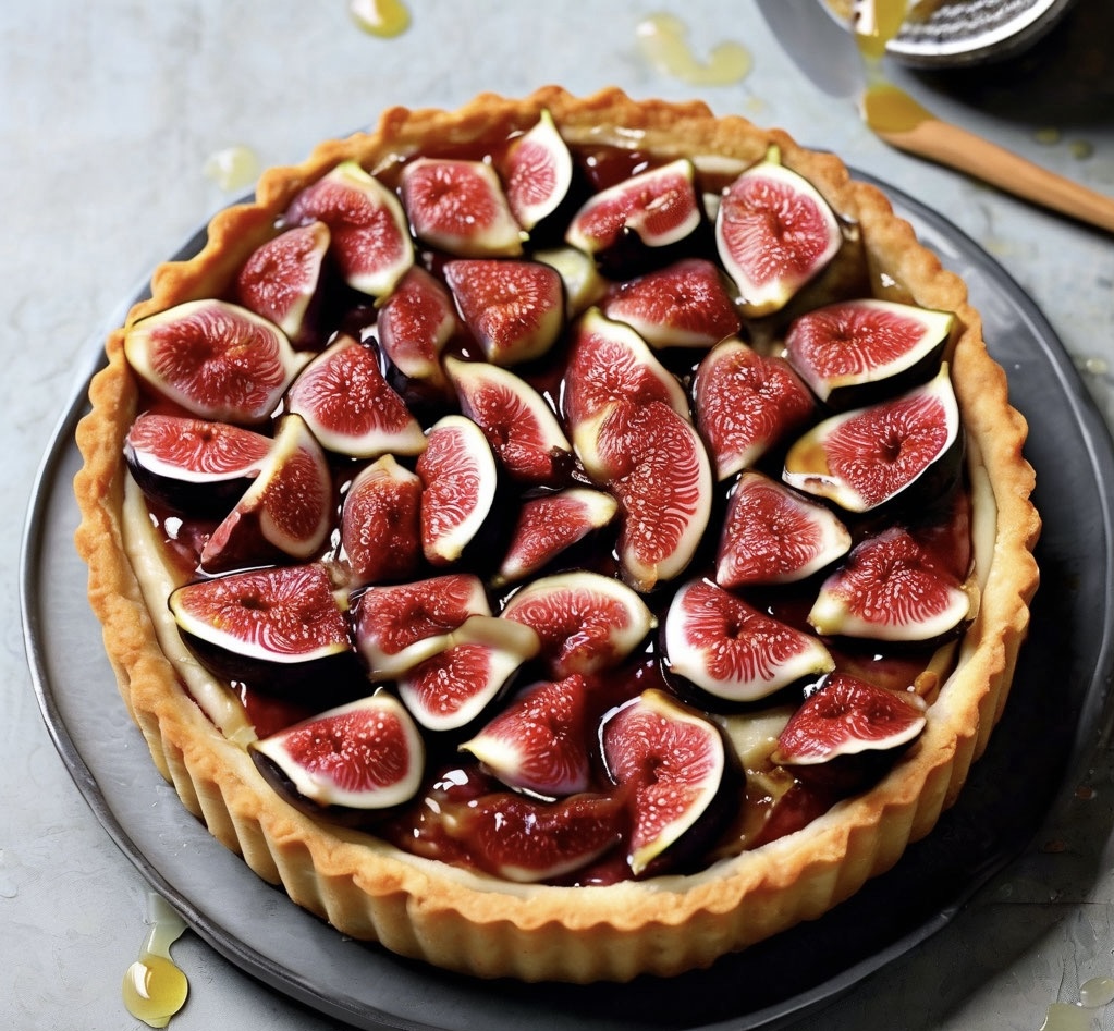 Выложите нарезанный инжир на основу тарта и полейте медом.