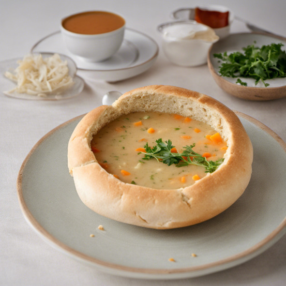 Суп в хлебе (Supă în pâine) – это изысканное блюдо румынской кухни, где суп сервируется в качестве варианта миски – внутри вырезанной хлебной корзинки.