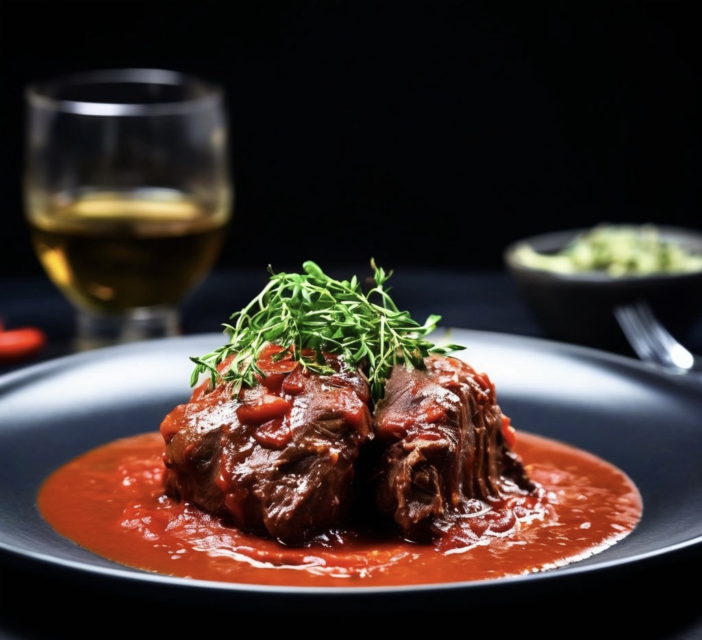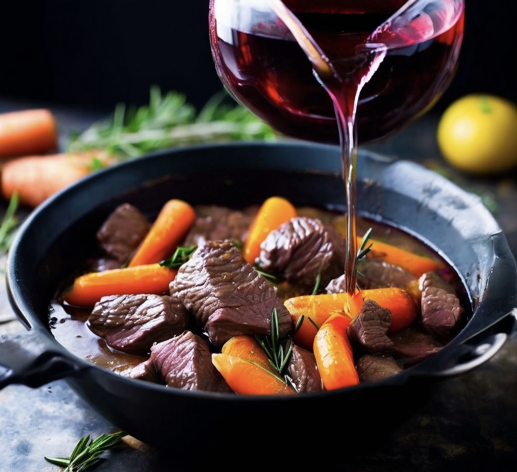 Готовую говядину тушеную в вине можно подать горячей и сразу же на стол.
