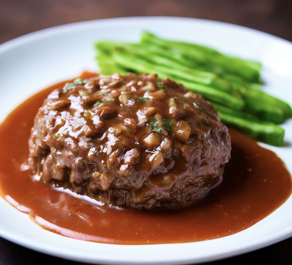 Готовый стейк Солсбери можно подавать с гарниром на выбор, таким как картофельное пюре или овощи на гарнир.