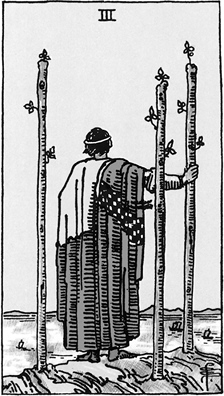 Рис. 12. Тройка жезлов (Младший аркан Таро). Колода Райдера-Уэйта-Смит