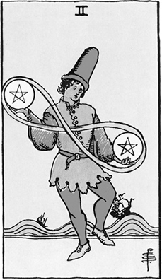 Рис. 14. Двойка монет (Младший аркан Таро). Колода Райдера-Уэйта-Смит