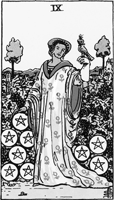 Рис. 19. Девятка монет (Младший аркан Таро). Колода Райдера-Уэйта-Смит