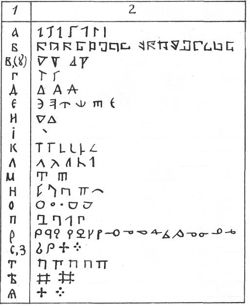 От древнейших людей- к письменности и рассмотрим алфавиты. С возникновением письменности был сделан большой шаг по пути окультуривания человечества. Самые первые письменные знаки назывались “Иероглифы”. Слово Иероглиф происходит от древнегреческого: “ Иероглифика грамматика“ что означает: “Святые письмена” что в свою очередь, является переводом с египетского: ”Письмо слова Бога “ Так древние египтяне называли свою письменность, принесённую на Землю первыми богами: Солнце подобным богом Тотом, создателем этих иероглифов на Земле, подобных тем, что были уже когда-то и принесено на Землю для совершенствования людей, так как сказано у Тота в Изумрудных скрижалях: “Нет ничего нового, всё уже было “. Он же, бог Тот, другое имя которого- солнце подобный Ра-Гор, научил пользоваться иероглифами других богов и людей, для записи летописей, описания деяний фараонов, для создания и описания ремёсел, наук, культуры. Представим теперь всё многообразие алфавитов Земли, этих кодов речи, букв- частичек алфавита, и десятка первейших исходных алфавитов, делящихся на почти две сотни языков и наречий. Только лишь в одном первом, исходном макро алфавите Шумера- 15 языков и диалектов! Это и шумерский, угаритский, хеттский, старо персидский и многие другие. Рассмотрим теперь немного ближе основные алфавиты, появившиеся в разное время. – Шумерская клинопись– 4 тыс. до н. э. Символы- буквы при таком письме разложены на короткие отрезки- клинья, отсюда и название письменности. Финикийский алфавит- один из самых древних, появился на Земле около 3-х тыс. лет назад, и он дал начало практически всем алфавитным системам. Родственники финикийскому алфавиту, а это южно-аравийское и угаритское письмо. – Египетская иероглифика– 3,300 тыс. до н. э. Слово” иероглиф” от греческого:” иероглифика грамматика”– “святые письмена”. Иероглифы, с древнеегипетского, это” письмо слова Бога”. Бог счёта, письма и наук Тот, дал богам и людям, он сам вёл летописи и писал книги. Записи велись на бумаге, сделанной из папируса. Выявлено 27 наиболее употребимых иероглифов. Период использования иероглифов- с 3,300 г. до н. э. до 39 г. н. э. Первоначально, древнеегипетское письмо было пиктографическим, то есть рисуночным: cлова изображались наглядными рисунками, например: солнце, бык. Затем, при помощи этих знаков стали записываться отвлечённые понятия, например: “горы”– горную цепь, в значении” чужеродная страна“, “солнце”– этот иероглиф означал: “ день”, так как солнце светит только днём. Во времена Старого, Среднего и Нового царств, было приблизительно 800 иероглифов, а в Птолемеевский период их было уже более 6 тысяч! – Иероглифическая письменность на п-ове Индостан—5тыс.– 3,100 тыс. лет до н. э. Самая ранняя письменность в Индии возникла уже 5 тыс. лет назад, но столь древние письмена пока не расшифрованы. Самые ранние из прочитанных письменных источников- 3 в. до н.э. отображены слоговым письмом Брахми, который является родоначальником всех позднейших ветвей индийского и других азиатских алфавитов, в том числе индонезийских языков. –Письменность Европы- Латиница– 2,300 тыс. лет до н. э. Согласно античным источникам, искусство письма было принесено в Лацци греками с Пелопоннеса, которые поселились на Палатинском холме центре будущего Рима. –Греческая (Крито-Микенская) иероглифика 2,100 -1,900