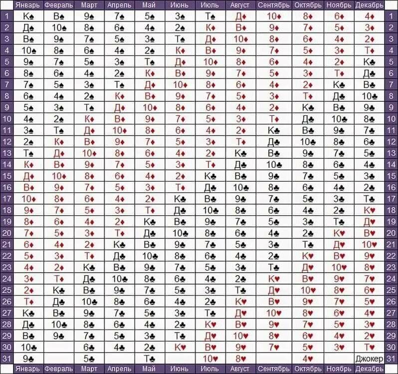 Возьмём произвольную дату для примера 09.12. это карта 9 треф.
