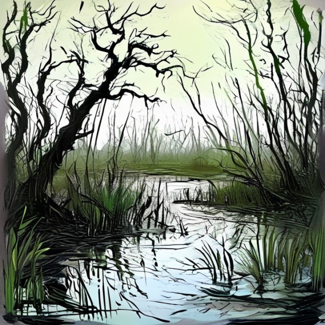 В воздухе стоял тяжёлый запах гнилой травы. Почва под лапами пружинила и дрожала. Болотная сырость, казалось, сковывала лапы и проникала до самых костей.