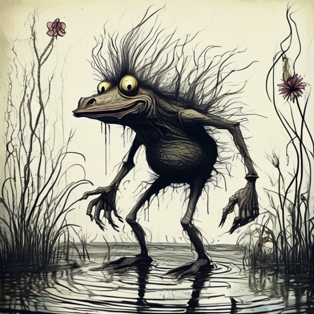 Дин погнался было за ней, но вскоре ему пришлось бросить эту затею ─ плетёный травяной гамак ходил под ним ходуном. А Болотник, затаившись в тёмной гнилой жиже, уже протягивал свои скользкие чешуйчатые лапы, чтобы утянуть отважного пса в вязкую бездонную топь.