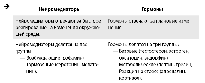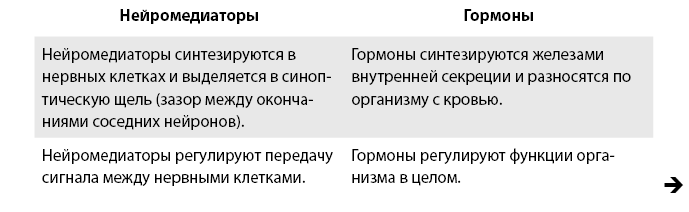 Нейромедиаторы отвечают за быструю реакцию, а гормоны за плановые действия.