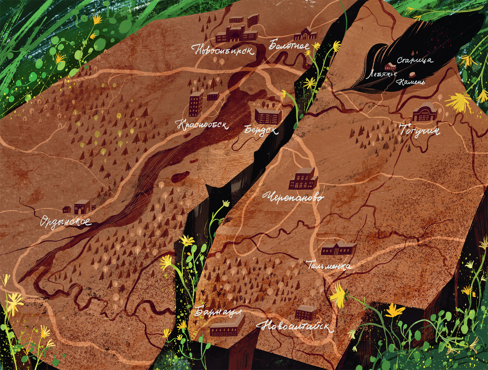 Путь потустороннему, волшебному (хоть и все волшебство тут исключительно мрачное) открывает главная героиня, Катя Чернова, которая оказывается проводницей между мирами – студенчеством со всеми его атрибутами: лекциями, пересдачами, жизнью в общежитии, спонтанной влюбленностью – и деревенской паранормальщиной – с темными лесами, таинственными обрядами и странными местными жителями. Авторы – бабы-яги берут героиню себе в подмастерья, так что роковую роль Катя начинает играть буквально с первых страниц: с того самого момента, как, приехав в Новосибирск поступать в консерваторию и провалив экзамен, садится на тринадцатый трамвай и едет в колледж – поступать уже на ветеринара. Там ее как бы в шутку предупреждают, что подписывать документы не вчитываясь – плохая затея: мало ли чем это может обернуться. Оборачивается это, с одной стороны, совершенно обычной учебой, а с другой – чередой странностей, которые связаны прежде всего с Леночкой, Катиной одногруппницей, приехавшей из глухой деревни Лебяжье. Действительно ли виной тому типовой контракт на «предоставление образовательных услуг» или дело в жутком черном пере, которое Катя подобрала в зимнем лесу, когда с соседкой отвозила болеющей Леночке конспекты? Найти это Лебяжье, кстати, оказалось не так уж просто. Существует ли вообще такая деревня или зря подруги мерзли и стирали ноги в кровь?