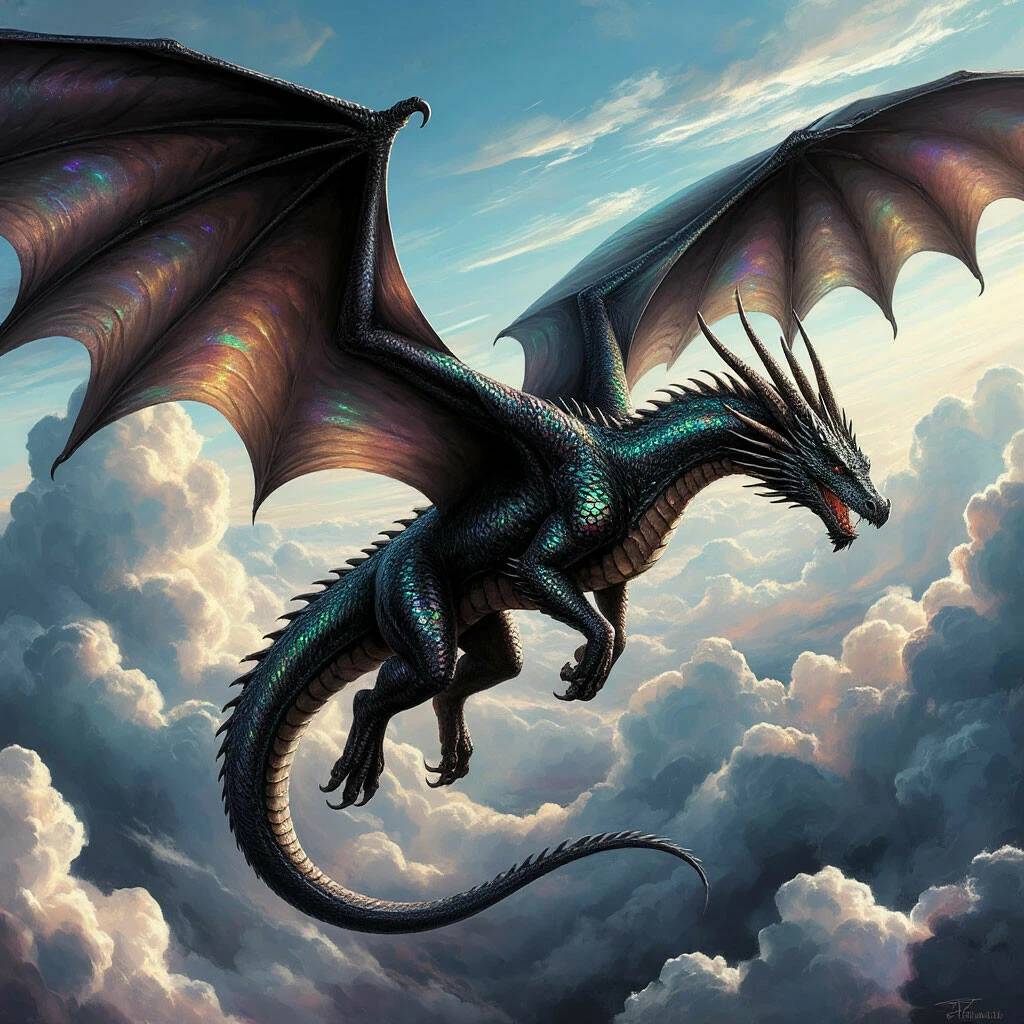 Ощущение полета ни с чем не сравнимо. Развела руки в стороны и поняла, что это не руки, а крылья. Тряхнув головой, повернула ее назад, чтоб разглядеть, что же там. То, что я увидела, повергло меня в шок. Огромные кожистые крылья, антрацитово-черные, с радужными переливами, словно бензиновая пленка, покрывала все мое немаленькое тело. Длинное, покрытое чешуей, гладкое, провела лапами по брюшку, когти цеплялись за чешую и я поняла, что это не просто чешуя, это непробиваемая, крепчайшая броня покрывает меня, защищая от всего на свете. При все этом чувствительность была на высоте, я чувствовала потоки воздуха, огибающие меня, и прохладу воды в облаках. Ощущения были очень приятными, рокот удовольствия вырвался из груди. Я взмахнула своими прекрасными крыльями и сделала поворот вокруг себя, я лечу.