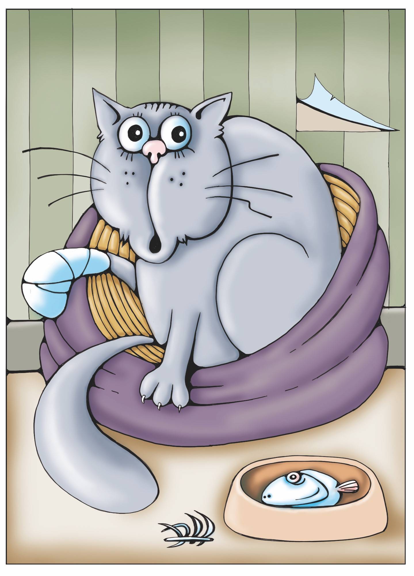– Вон там. Сидит в углу на мягком стуле. А, вообще, большую часть времени он проводит в кухне на широком подоконнике. Смотрит на улицу, видно скучает по прежним хозяевам или по воле.