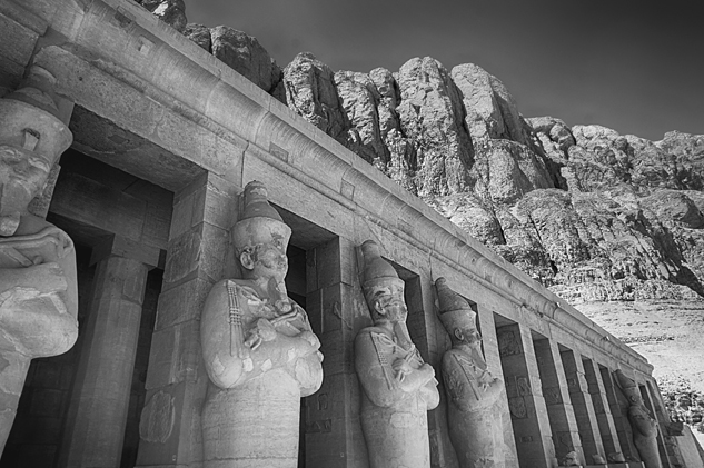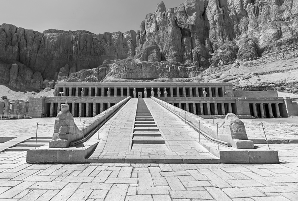 История ее божественного рождения детальнейшим образом представлена в ее заупокойном комплексе, исследования которого продолжаются (как пишут специалисты, понадобится еще лет 50, чтобы завершить работы). Это сказочное место, где есть аллеи сфинксов, и у каждого – лицо Хатшепсут. На естественных террасах стоит удивительный комплекс храмов, и кажется, что он вырастает из скал.