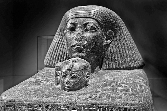 Кубовидная статуя Сенмута с дочерью Хатшепсут Нефрурой.