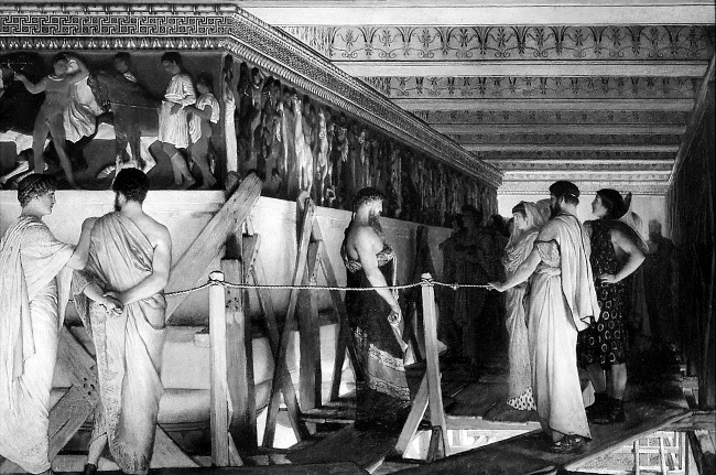 Лоуренс Альма-Тадема. Фидий показывает друзьям, в том числе Периклу и Аспазии, Парфенонский фриз. 1868 г.