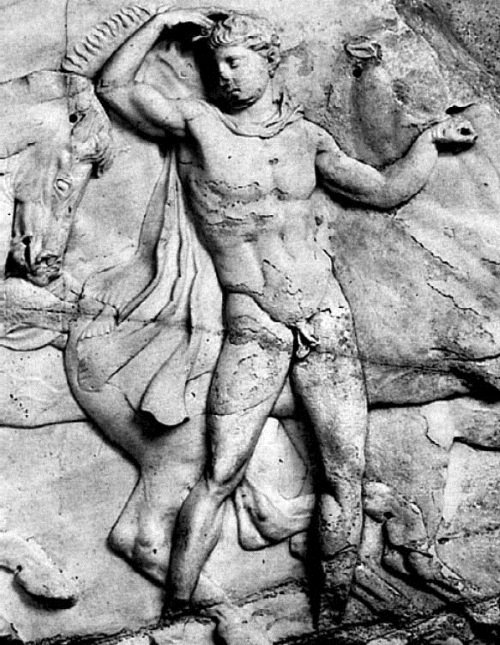 Однако известно, что завистливы не только люди, но и боги. Сначала Фидия обвинили в том, что он присвоил себе часть золота и серебра, предназначенные для украшения скульптуры Афины. Обвинение, сделанное по доносу его ученика, оказалось лживым. Доспехи Афины были съемными, их удалось взвесить. Тогда ученик-провокатор обвинил Фидия в святотатстве, ибо на щите одного из воинов в сцене сражения были обнаружены изображения Перикла и самого скульптора. И за это Фидий был брошен в тюрьму, где и умер.