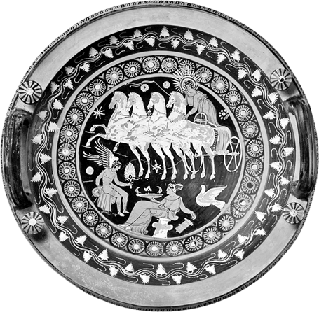 Богиня зари Эос в своей колеснице. Роспись на блюде. Конец IV в. до н.э.