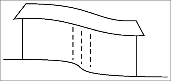 Внешне это выглядит, словно строение «съехало» на один бок (рис. 2). Полы становятся неровными, отклоняются от строго горизонтального положения. Может неравномерно просесть цокольная часть. Все это признаки неравномерной просадки фундамента. Если нагрузка на него везде одинакова, то этот дефект является следствием вымывания почвы, образования пустот. Если фундамент свайный, то возможен также другой дефект – вертикальная неустойчивость столбов. При размывании грунта некоторые столбы могут накрениться, что приводит к перекосу части строения, расположенной над ними.