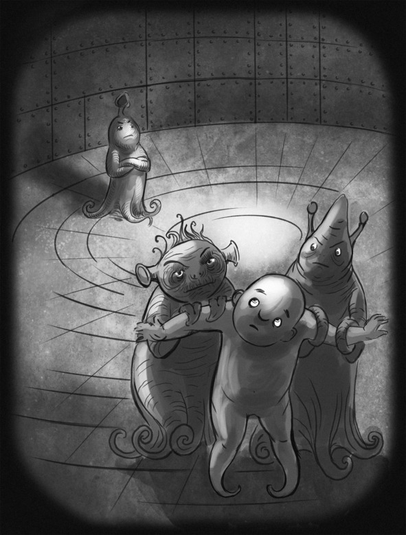 Но если где-либо и оказывалось обездвиженное туловище, то всего на пару моментов – затем оно вскакивало и вновь бросалось в драку с прежним азартом. Живулька, тоже внимательно осматривающий всё вокруг, с удивлением обнаружил, что из помещения нет никакого выхода. Полы, стены, потолок сливались воедино. А все жи, монотонно равномерно наносившие друг по другу удары, выглядели клонами друг друга.