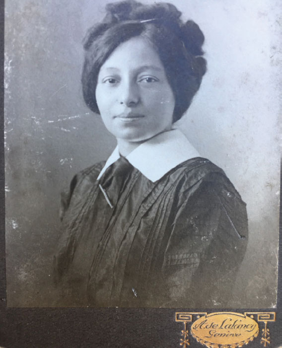 Фото моей бабушки Любовь Петровны Ломовской сделано в Женеве в 1912 году. На обороте фотографии слово «Женева» (Geneva) тщательно выскоблено бритвой, а на лицевой стороне фотографии зачеркнуть забыли.