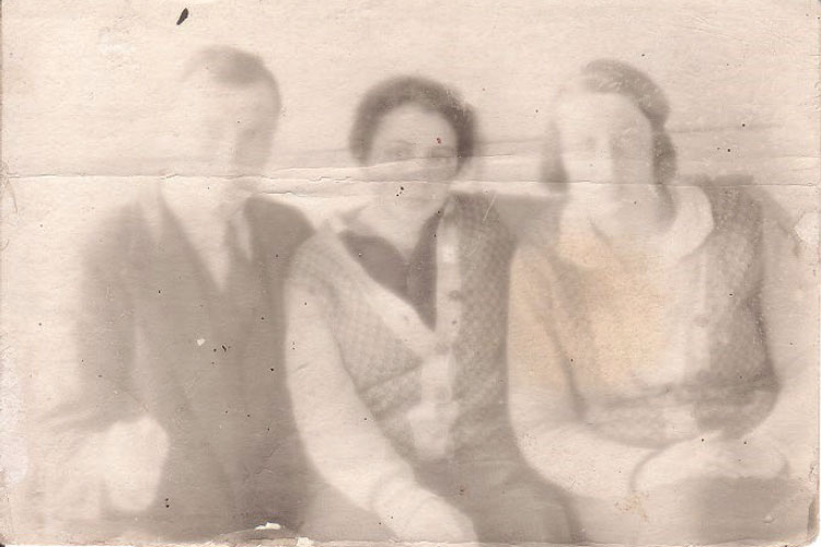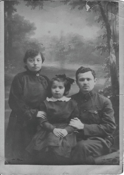 Мои дедушка, бабушка и мама (мама в 1-ом классе гимназии). Фото 1918 года, г. Полтава. Дедушка в какой-то полувоенной гимнастёрке, фотография сделана на дешёвой фотобумаге без обозначения фотографии.