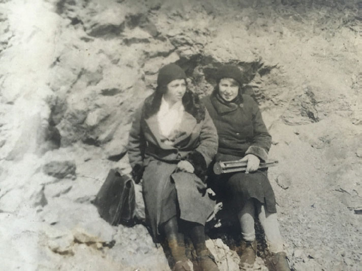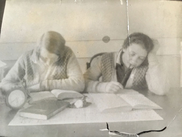 Лёля Мукосеева и Муся Ломовская (моя мама). Хабаровск, 1933 год. На обороте фотографии надпись: «Комвузовская профессура за научными трудами».