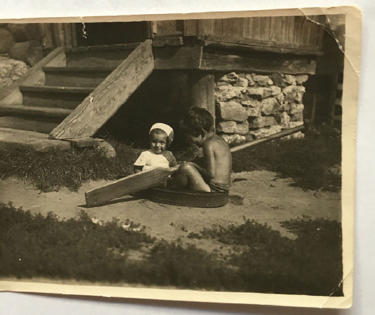 Чудом сохранившееся фото из альбома с моими (Н. Л.) детскими фотографиями. Наташа старшая и я на биостанции в Кропотово. Я ещё не понимаю, что мы плывем на лодочке.