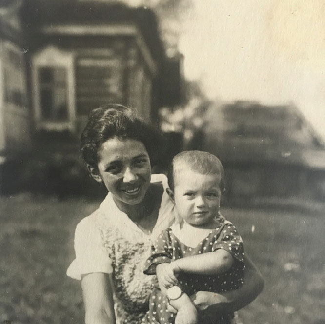 Мне было неполных шесть лет, когда началась война. При первых бомбежках Москвы в котельную нашего дома, используемую в качестве бомбоубежища, попала зажигательная бомба. Мы были там с мамой, и я хорошо помню, как тушили пожар. Потом после сигнала воздушной тревоги мы стали ходить на станцию метро Маяковская, расположенную в 10–ти минутах от нашего дома глубоко под землей. Осенью 1941 года мы с бабушкой Любовь Петровной и с дедушкой Григорием Иосифовичем уехали в эвакуацию, а мама с папой еще оставались в Москве. Помню бомбежку нашего парохода по пути в г. Плёс на Волге. Через короткое время из Плёса переехали в г. Киров, где оказались дальние родственники дедушки. Дедушка до этого работал несколько месяцев на трудовом фронте под Москвой, застудил почки и скончался в начале 1942 года в г. Кирове в возрасте 56 лет. Его могилу найти не смогли. Помню, что он уже больной сокрушался, что я, уже «взрослая» девочка, а читать ещё не научилась. У бабушки была иждивенческая карточка, и мы голодали. До сих пор помню потрясающий вкус солдатских сухарей. Часть поломанных сухарей отбраковывали, не посылали на фронт и отоваривали по карточкам. Помню как продавщица в магазине отламывала и давала мне и другим детям кусочек от хлеба, уже выданного по карточке. И как каждая крошка хлеба, упавшая на стол, немедленно отправлялась в рот.