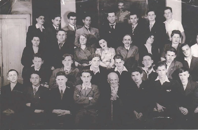 9-ый или 10-ый класс школы, где Лёня, Л. М. Фонштейн (1932–2014), мой будущий муж, учился с 5-ого класса. В первом ряду второй слева Лёня. Крайний слева во втором ряду – Егор Заварзин (Георгий Александрович Заварзин (1933–2011), будущий выдающийся микробиолог, академик РАН.