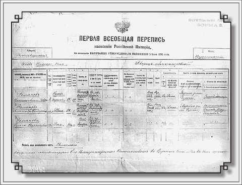 Первую всеобщую перепись населения Российской империи, на основании утвержденного 5 июня 1895 года Николаем II Положения, произвели 28 января 1897 года. Как выглядел в тот раз переписной лист, вы видите на нашем снимке; даже надеюсь, разберете кое-что из написанного. Но на всякий случай некоторые записи «переведу».