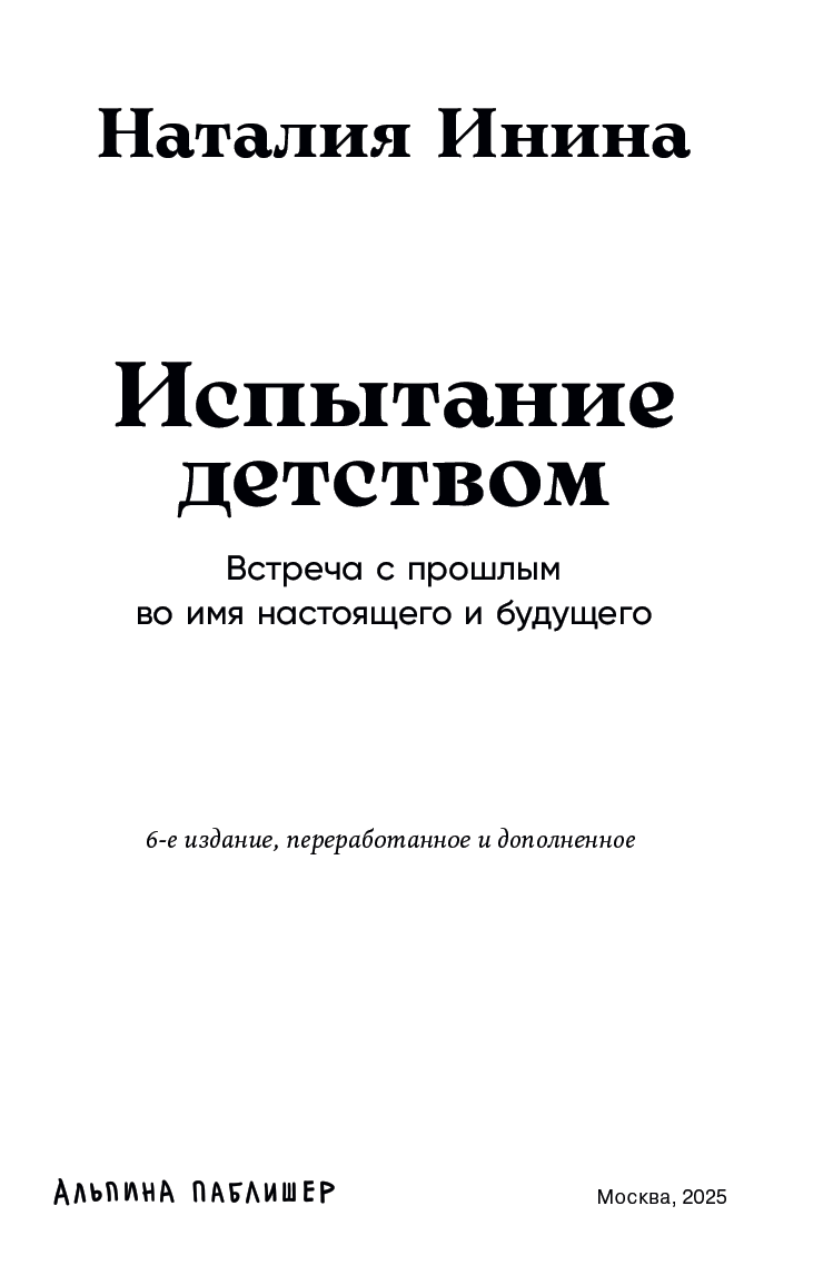 В. М. Аллахвердов, профессор, заведующий кафедрой общей психологии факультета психологии СПбГУ;О. В. Аллахвердова, доцент кафедры теории и практики социальной работы СПбГУБольшинство переживаемых российскими людьми психологических затруднений и даже страданий Наталия Инина возводит к детству. Она, наверно, права с медицинской точки зрения (не берусь судить уверенно), но уж точно права в социальном смысле. Эта книга, на мой взгляд, должна быть в руках у каждого – по крайней мере семейного! – соотечественника. В ней – ключ к психологическому здоровью.