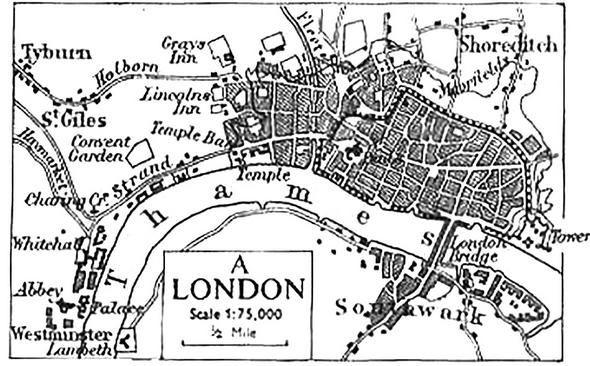 Рис. 1. 40. a. Карта Лондона, AD 1300, b. Карта Парижа, AD 1550.