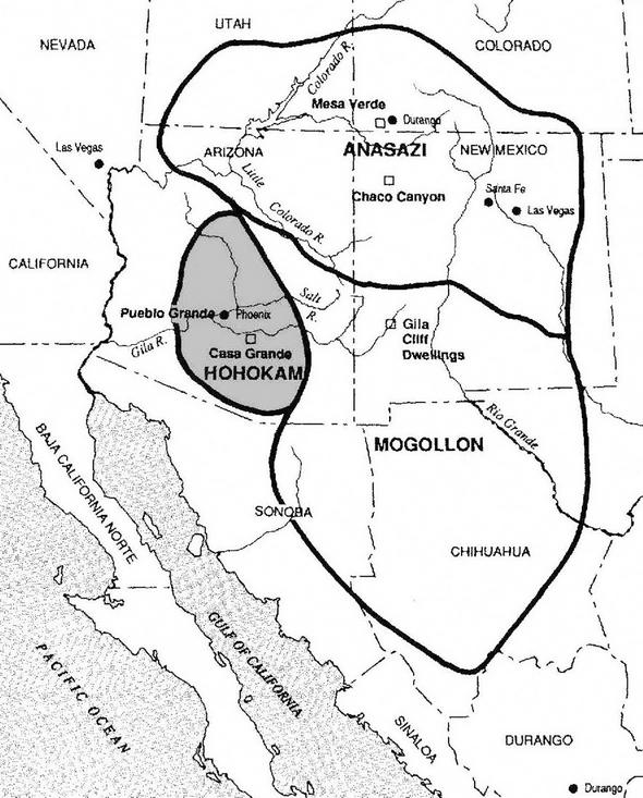 Так же как и их далекие сибирские предки, люди Hohokam строили pit houses (Рис. 1. 3.) – идеальное жилище для континентального климата, смягчающее резкие суточные перепады температуры. К середине первого тысячелетия AD дальнейшее развитие Мезоамериканских контактов способствовало обогащению аграрной культуры Hohocam идеями урбанизма, распространение которых привело к созданию у ближайших соседей – Anasazi наиболее урбанистичной культуры и архитектуры Юго-запада Америки Доколумбовой эпохи.