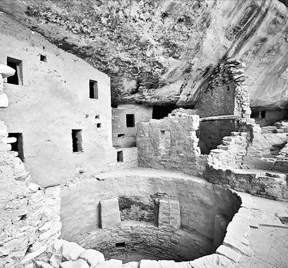Около AD 700 Anasazi начали отказываться от древней идеи pit-house в пользу новых архитектурных форм, известных сегодня как pueblos (Рис. 1.45.). К этому времени аграрные успехи привели к увеличению популяции региона и отводить драгоценные пахотные земли под разрозненное жилье стало нецелесообразным. Как в свое время строители Ближнего Востока, Anasazi стали возводить компактные наземные поселения, экономно расходующие строительную площадь, дающие чувство сплоченности и способные выдержать вражескую осаду. Подземными оставались только kivas, которые, по-прежнему размещались в центре жилого комплекса.