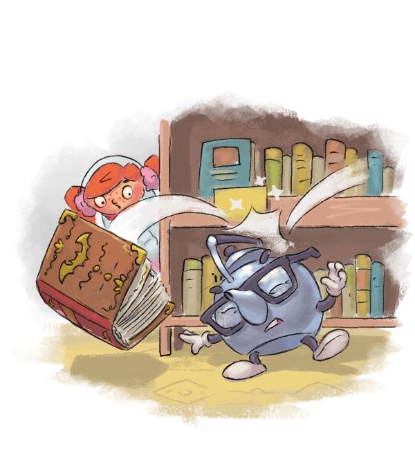 Внезапно Веснушка почувствовала, что из шкафа на неё кто-то смотрит. Она внимательно оглядела полки, но не заметила ничего необычного. Повсюду стояли книги. Однако Веснушку не покидало ощущение, что за ней следят. Она только открыла рот, чтобы рассказать об этом другу, как с верхней полки выпрыгнула толстая книга и полетела прямо к ней в руки.
