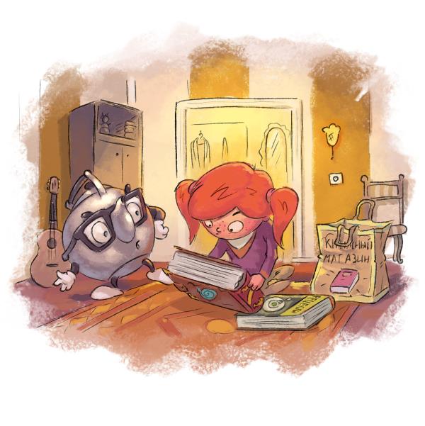 – Нет, – возразил Кипятоша. – Нам она не нужна, – настойчиво проговорил он, забирая необычную книгу из рук Веснушки. – Мы пришли за другим! – добавил он и показал девочке энциклопедию кулинарного искусства.