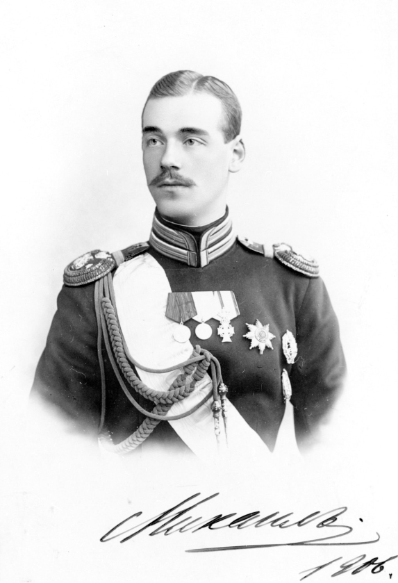 Судьба его романтична и таинственна. Михаил был пятым ребенком в семье императора Александра III[1] и его августейшей супруги Марии Федоровны[2] (после Николая, Александра, умершего в младенчестве, Георгия и Ксении. Младшая сестра – Ольга. – Прим. автора), родился 22.11/05.12.1878 года[3] в Санкт-Петербурге, в Аничковом дворце. Согласно закону о престолонаследии, наследником он стал в 1899 году после смерти от туберкулеза великого князя Георгия Александровича. От него Михаил унаследовал и значительную часть имущества, в том числе, большое имение Брасово, которое в дальнейшем сыграло значительную роль в его судьбе.