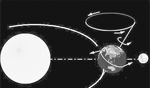 Мы говорили о том, что таз отзеркаливается на голову, и обе эти структуры участвуют в планетарном движении Земли, ведомой Солнцем и сопровождаемой Луной (рис. 1).