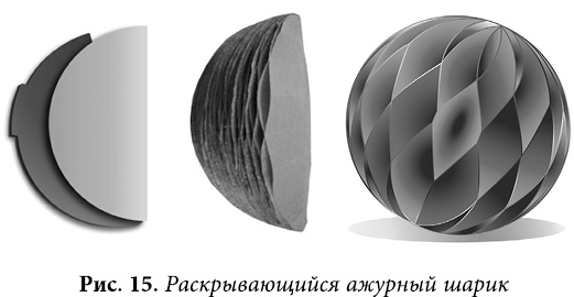 Причем, повторюсь, это будут не просто спирали из ленточек – внутри них, как в полноценных амфорах, находится энергетическое содержание, задающее их форму. И именно в них левитирует кристалл, который и задает «программу». Эти кристаллы в сфере хорошо просматриваются на примере конструкции ажурного шарика, сложенного из папиросной бумаги.