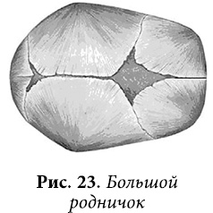 Самый крупный родничок – большой – из пяти, имеющихся у новорожденного, выглядит на макушке черепа как ямка ромбовидной формы.