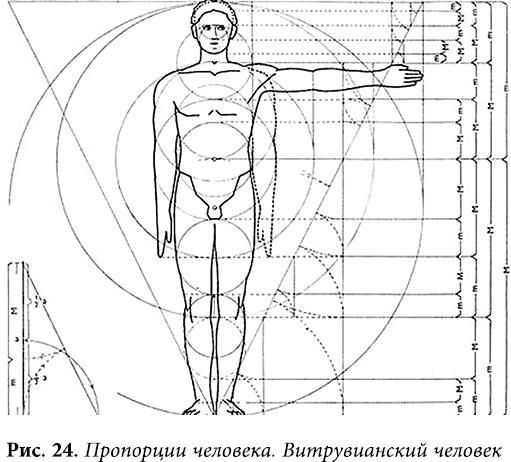 Пропорции «Витрувианского человека» часто называют каноническими, следующими правилу «золотого сечения».