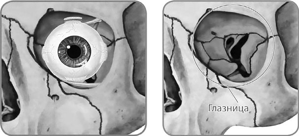 Каждая кость, стыкуясь с соседней, образует свой шов. Из-за подвижек этих костей «пустоты» глазниц черепа деформируются, что приводит к ухудшению формы глаз (их сужению, западению).