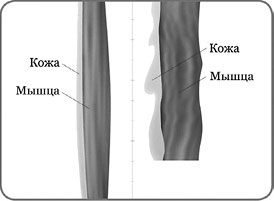 Рис. 2.1. Мышца в норме (слева) и в гипертонусе (справа)