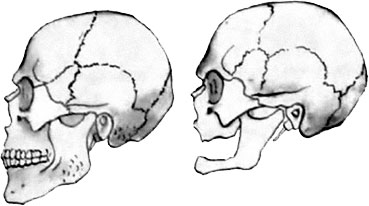 Рис. 3.3. Череп молодого человека (слева). Череп старого человека (справа)